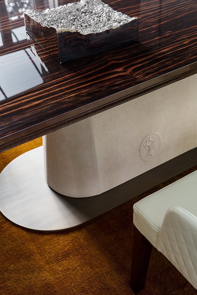 Фабрика ALBERTA SALOTTI использует только лучшие материалы, что обеспечивает долговечность и высокую эстетическую ценность стола. Каждая деталь изготовлена вручную мастерами своего дела, что гарантирует высокое качество и эксклюзивность. Обивка и отделка могут быть персонализированы в соответствии с вашими предпочтениями, что позволяет создать уникальный продукт, отражающий ваш стиль.