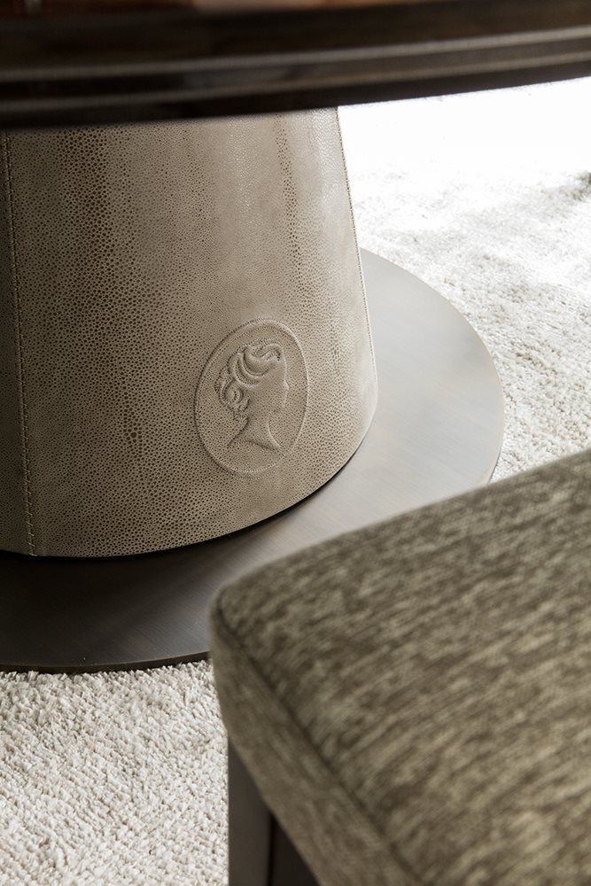 Стол JUDY выделяется своей уникальной формой и стильными элементами. Элегантная рельефная камея, расположенная на центральной опоре, подчеркивает оригинальный дизайнерский подход и придает изделию особую харизму. Каждый взгляд на этот стол вызывает восхищение и желание создать вокруг него атмосферу уюта и тепла. Этот предмет станет центральной точкой в вашем доме, вокруг которой будут собираться родные и близкие.