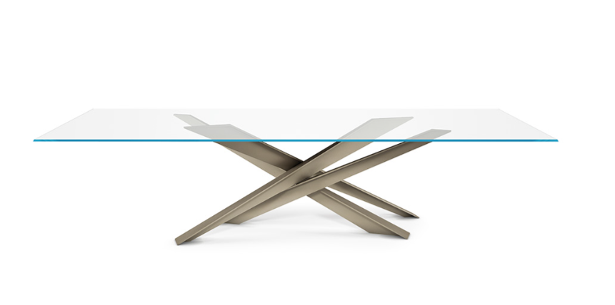 Итальянский дизайнерский стол LANCER от CATTELAN ITALIA — воплощение современной эстетики и архитектурной выразительности. Скульптурная основа с пересекающимися металлическими лопастями создает динамичную композицию, подчеркнутую игрой света и тени. Доступен в нескольких вариантах: с прозрачным стеклянным верхом, декорированным бронзой (Moonglass), керамической столешницей (Keramik) или благородной деревянной поверхностью (Wood). Размеры — от 240×120 см до 300×120 см. Итальянское качество и смелый дизайн делают этот стол центральным элементом интерьера.