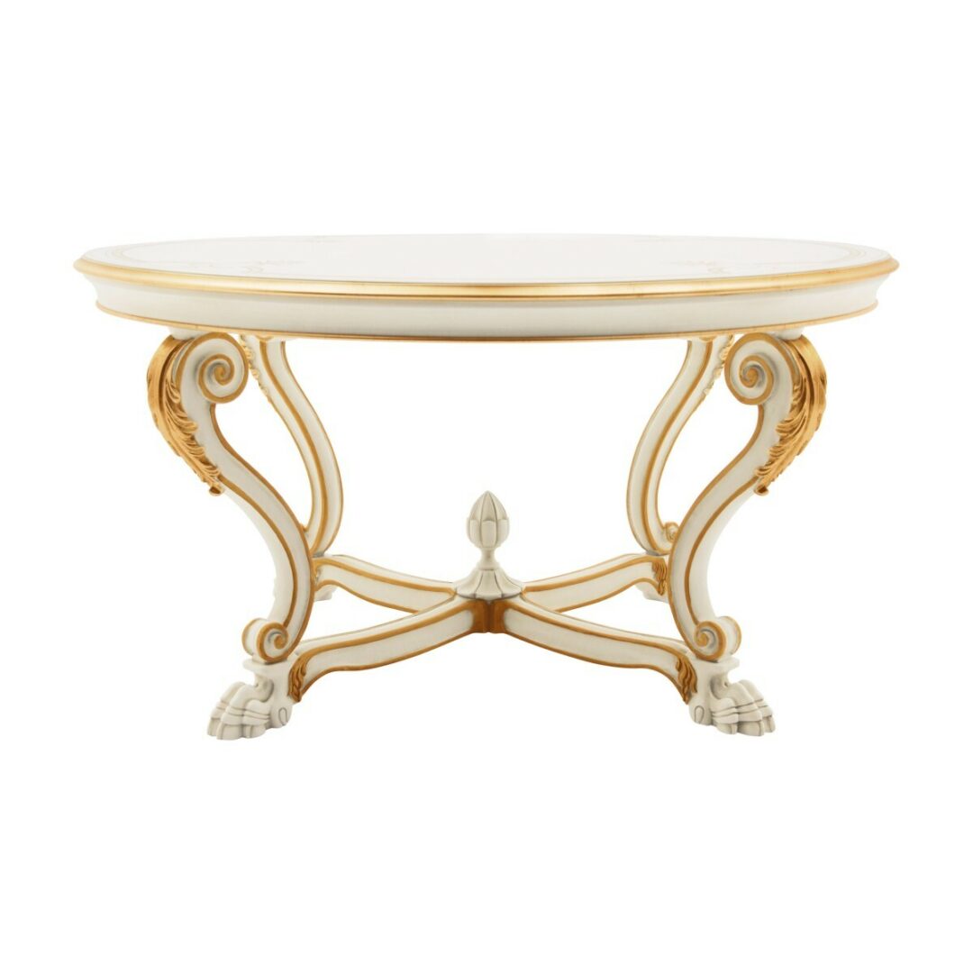 Круглая форма стола LEONE способствует созданию дружеской атмосферы, идеально подходящей для трапез с близкими и друзьями. Размеры стола (150 см в ширину и глубину, 78 см в высоту) обеспечивают достаточно места для комфортного размещения гостей. Резьба на столешнице может быть дополнена серебряным или сусальным лаком, что придаст дополнительный штрих изысканности и подчеркнет статус вашего интерьера.