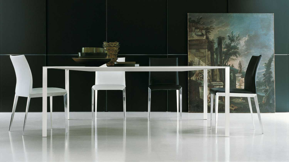 Стол LESSLESS от итальянской фабрики MOLTENI & C. – воплощение современного дизайна и технологий. Алюминиевая столешница с тонкими жесткими краями создана путем сгибания листа под углом, что обеспечивает прочность и легкость. Изначально разработанный для парижского фонда Cartier, стол отличается элегантностью и универсальностью, подходя для любого интерьера.