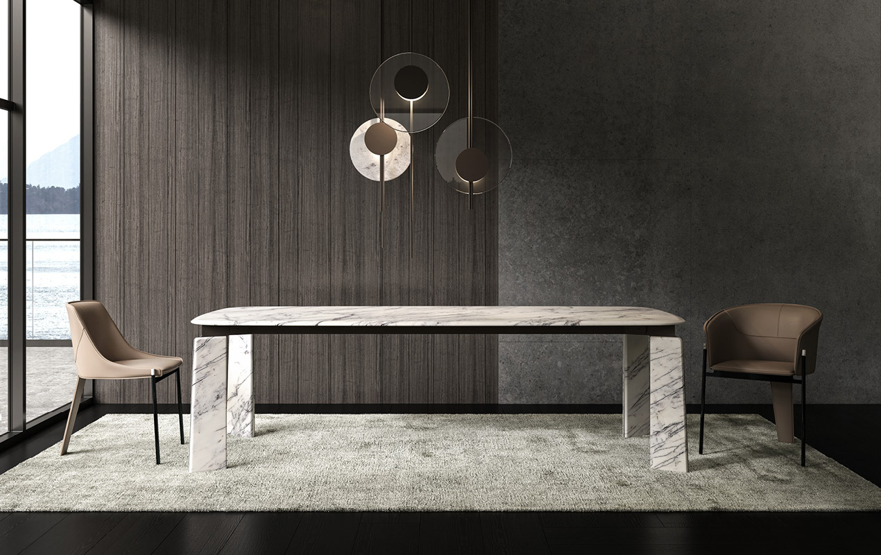 Дизайн Маурицио Манцони подчеркивает итальянское мастерство: натуральный мрамор, плавные линии и гармоничная композиция делают этот стол центральным элементом интерьера. Доступен в трех размерах, адаптированных под разные пространства.