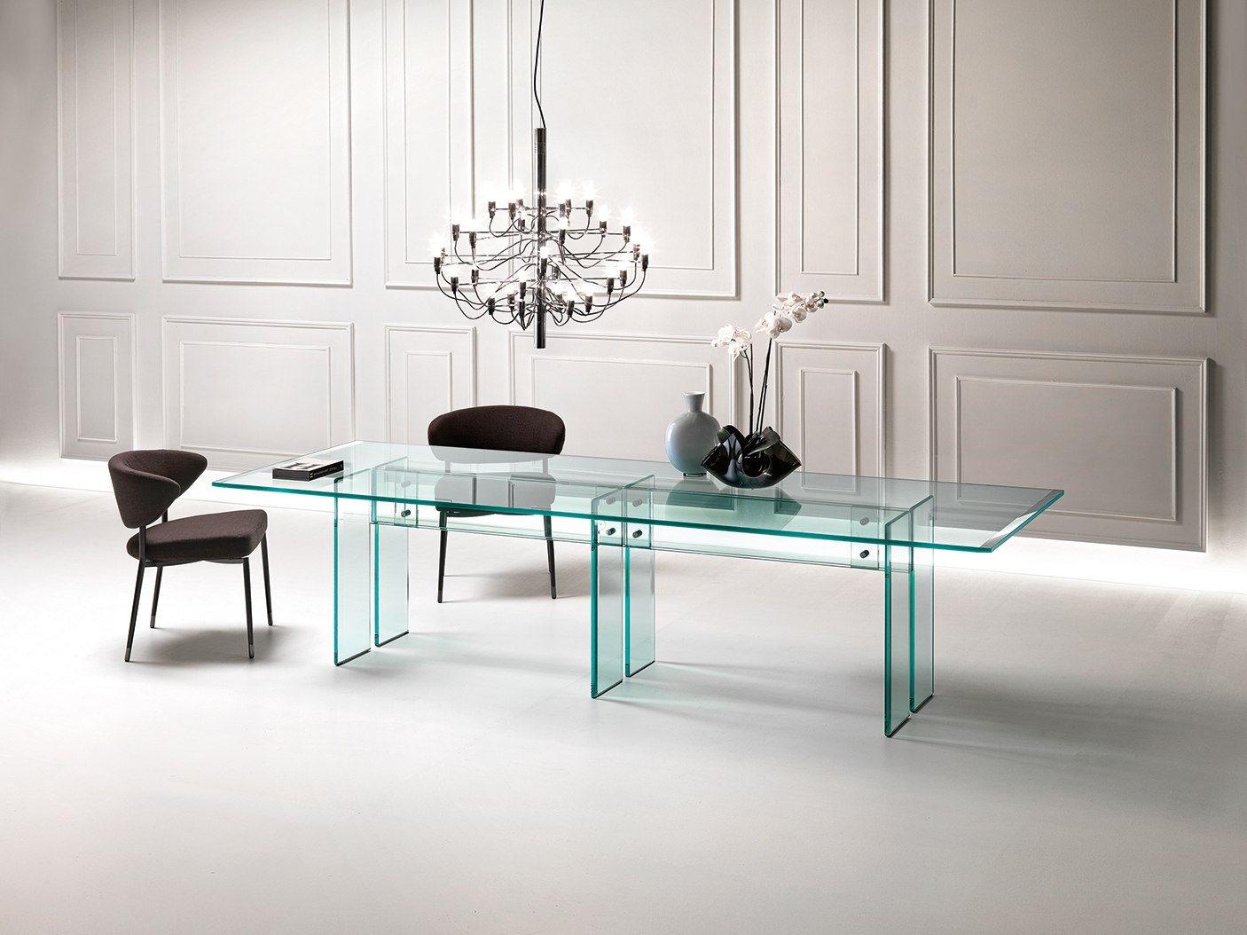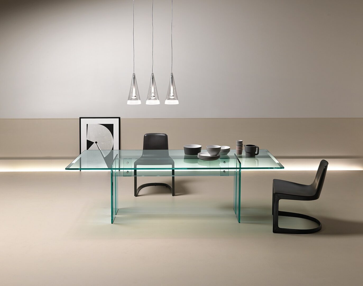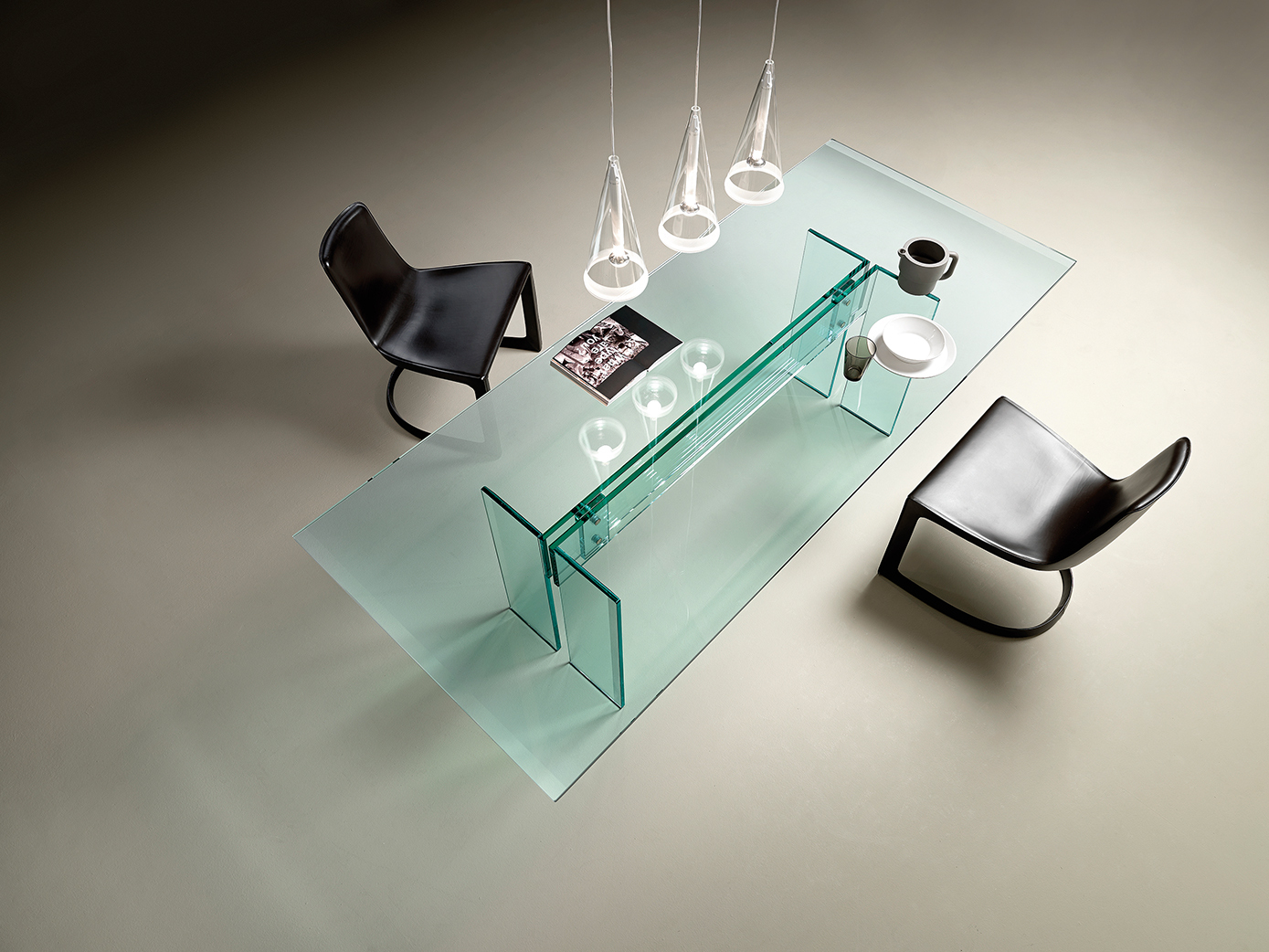 Стол LLT от итальянской фабрики Fiam Italia — элегантное решение для современного интерьера. Прозрачная стеклянная столешница толщиной 15 или 19 мм со скосом по краям создаёт эффект лёгкости, а сварная стеклянная ножка с фаской подчёркивает премиальный дизайн. Крепежные элементы из нержавеющей стали обеспечивают надёжность конструкции.