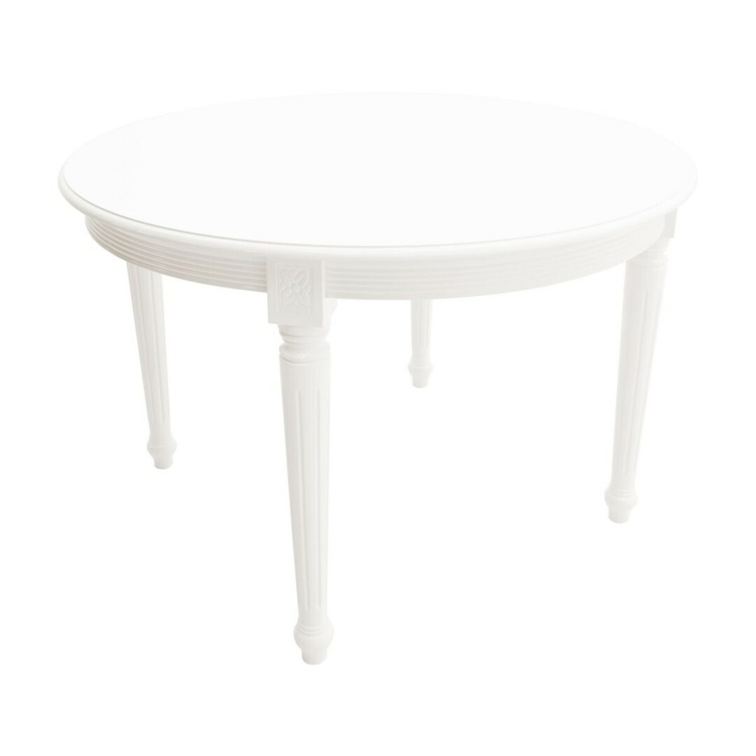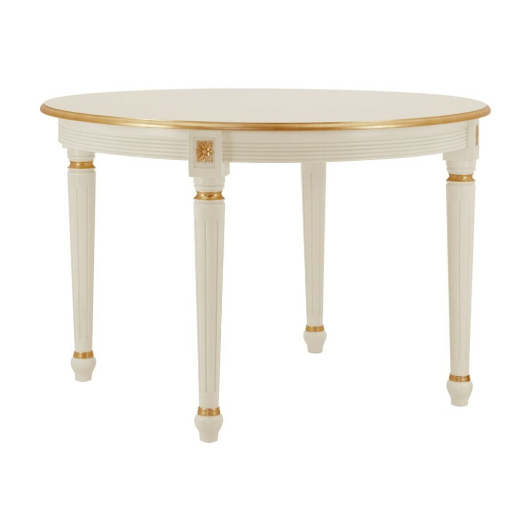 Стол LUIGI – это элегантный круглый деревянный стол, идеально сочетающийся с классической мебелью в стиле Людовика XVI. Его изысканная резьба на ножках и боковой ленте может быть дополнена покрытием из серебра или сусального золота, что придаст вашему интерьеру роскоши.