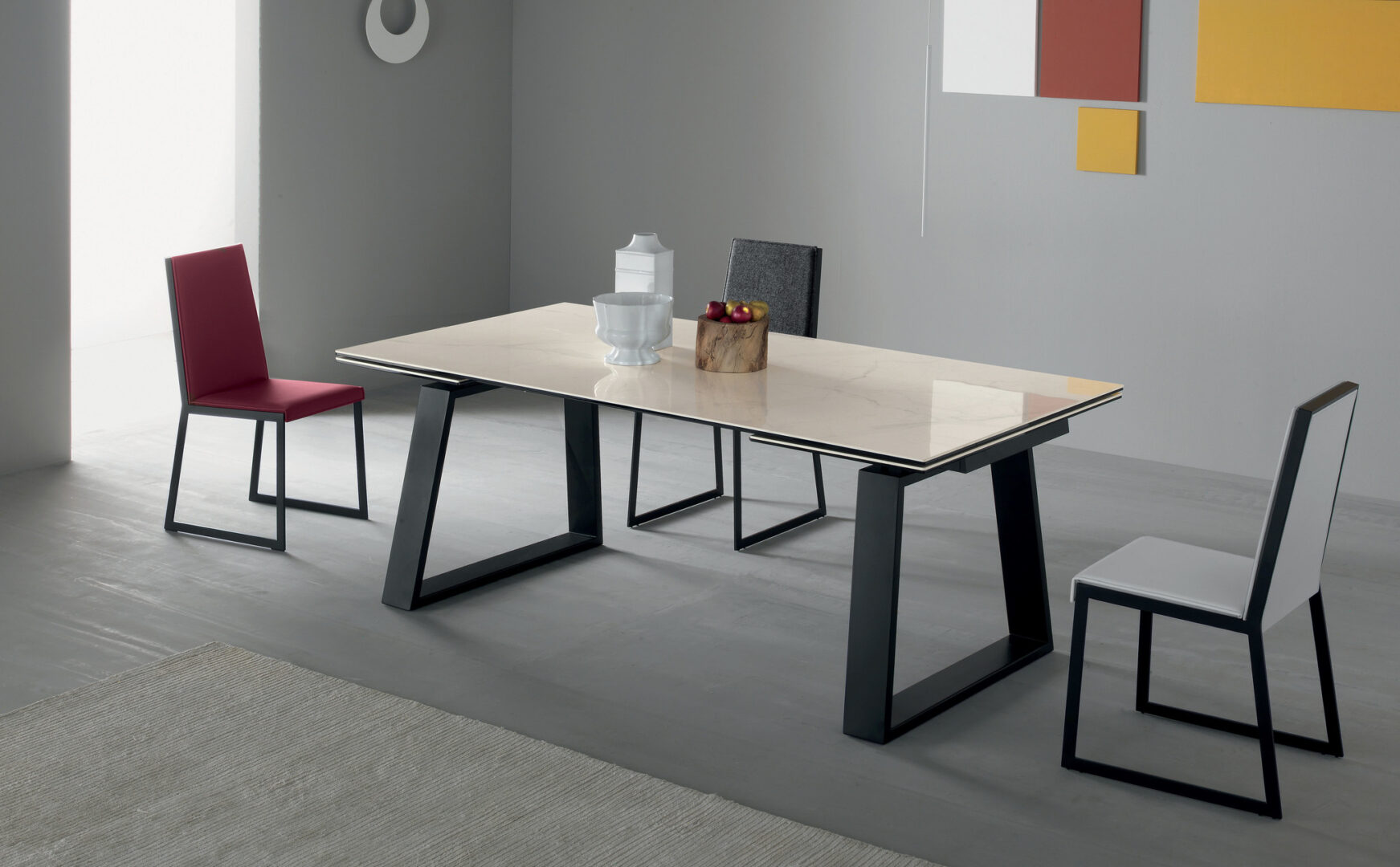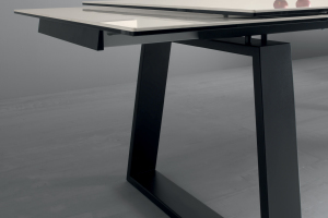Стол MANGO от итальянской фабрики COMPAR — элегантное решение для обеденной зоны. Модель с выдвижной рамой из матового черного алюминия и двумя удлинениями по 50 см обеспечивает функциональность и простор. Трапециевидные ножки из лакированного металла придают устойчивость, а керамическая столешница (матовая или глянцевая) доступна в нескольких оттенках: белый, антрацит-серый, жемчужно-серый. Итальянское качество материалов и продуманный дизайн делают этот стол стильным дополнением интерьера.