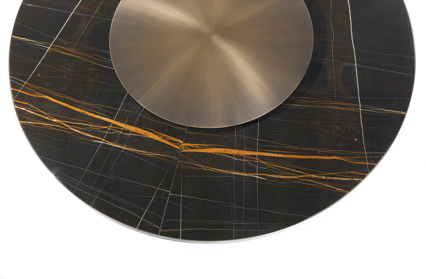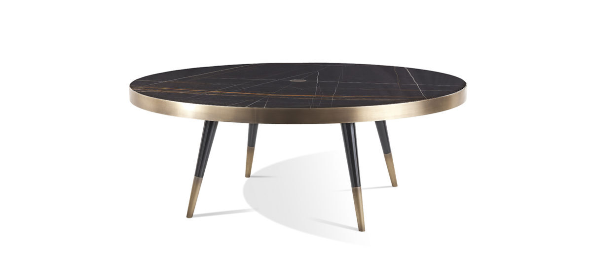 Обеденный стол Mayfair от Gianfranco Ferre – воплощение итальянской роскоши и безупречного вкуса. Верх из редкого мрамора Sahara noir придает столу благородный вид, а встроенная вращающаяся столешница Lazy Susan с бронзовой отделкой делает сервировку удобной. Утонченные черные лакированные ножки с бронзовыми деталями отсылают к эстетике 50-х годов, подчеркивая элегантность дизайна. Прочная конструкция из букового дерева гарантирует долговечность. Италия – синоним качества и изысканности в мебельном искусстве.