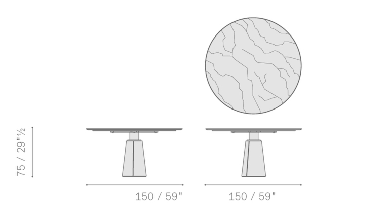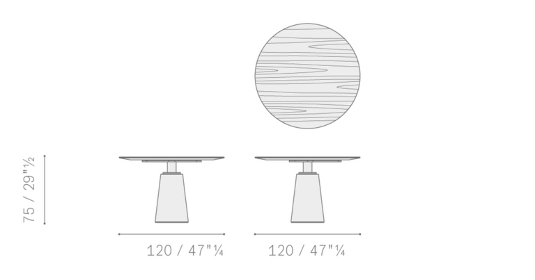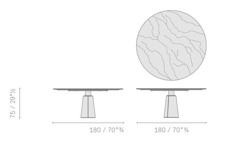Стол Mesa Due предлагает несколько размеров и форм, включая круглые столы диаметром 120, 150 и 180 см, а также прямоугольный стол размером 260 x 110 см. Это разнообразие позволяет адаптировать стол под любые потребности, будь то уютный семейный ужин или стильная встреча с друзьями. Круглый стол длиной 180 см может быть дополнен уникальным механизмом Lazy Susan, что сделает ваши собрания еще более комфортными.