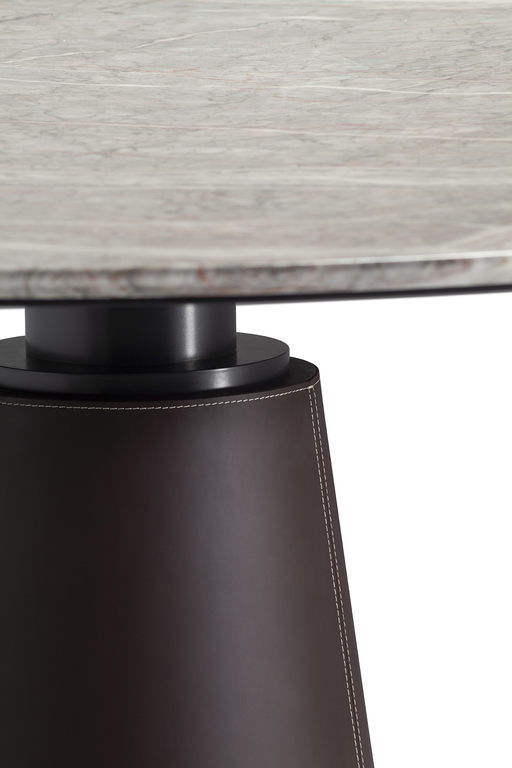 Дизайнеры Poltrona Frau применяют передовые технологии, чтобы обеспечить максимальную устойчивость и комфорт. Стол имеет основание из pietra serena или стали, обитое кожей Cuoio Saddle Extra. Система внутренних противовесов гарантирует надежность, а пластиковые наконечники защищают пол от повреждений. Стол может быть дополнен отстойной электрической розеткой по желанию клиента, что делает его еще более функциональным.