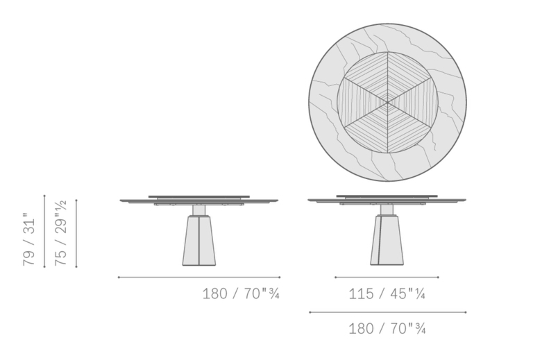 Стол Mesa Due представляет собой великолепное сочетание элегантности и практичности. Он доступен в различных формах и размерах: от уютного бистро диаметром 120 см до внушительного обеденного стола диаметром 150 или 180 см и прямоугольного варианта 260 x 110 см. Каждая модель разработана с учетом современных тенденций и потребностей, обеспечивая идеальное место для семейных ужинов или дружеских встреч.