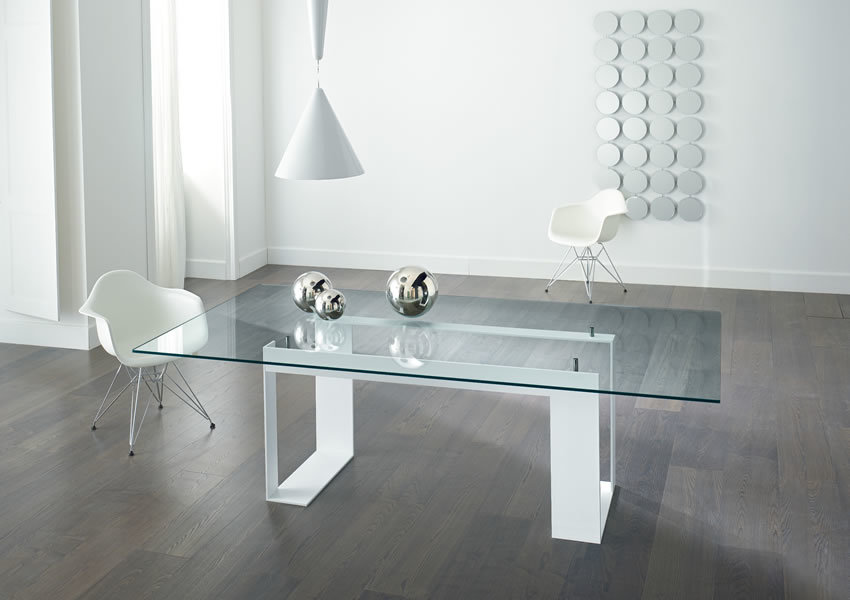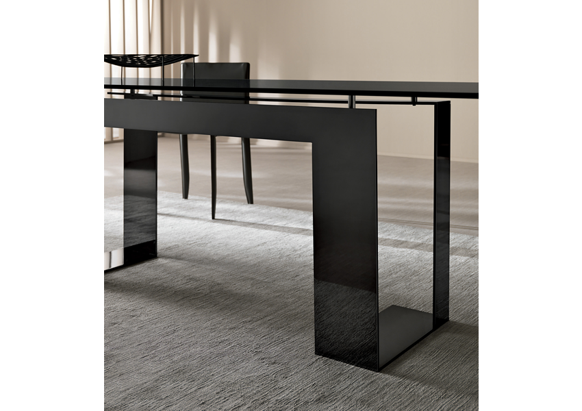 Обеденный стол MILES от итальянской фабрики TONELLI сочетает современный дизайн с безупречным качеством. Стеклянная столешница элегантно располагается на четырёх опорах, доступных в матовом чёрном, белом или хромированном исполнении. Идеальное решение для гостиной или столовой, подчеркивающее стиль и функциональность.