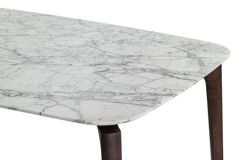 Стол Nabucco отличается элегантными линиями и изысканными формами. Ножки, изготовленные из массива ясеня, доступны в двух благородных оттенках: венге и мока. Это придает столу не только прочность, но и визуальную легкость. Столешница, выполненная из дерева или мрамора, дополнена округлыми краями, что создает эффект плавности и гармонии. Мраморные варианты, такие как золотой мрамор Calacatta или мрамор Emperador, имеют глянцевую или полуглянцевую отделку, подчеркивающую их великолепие.
