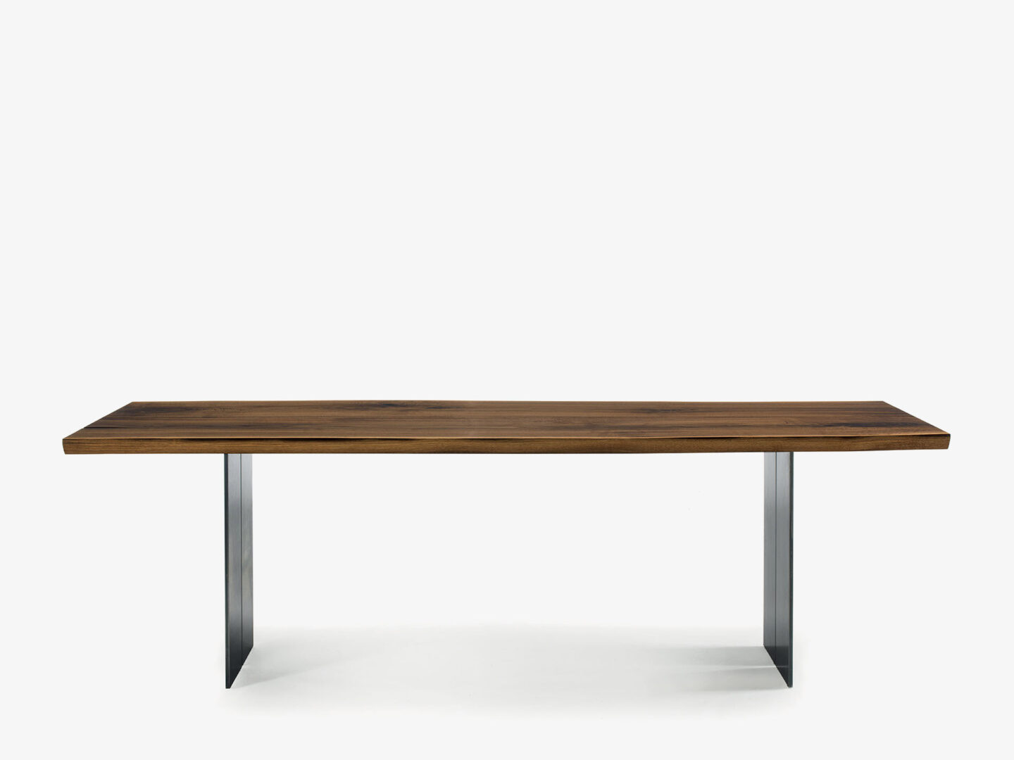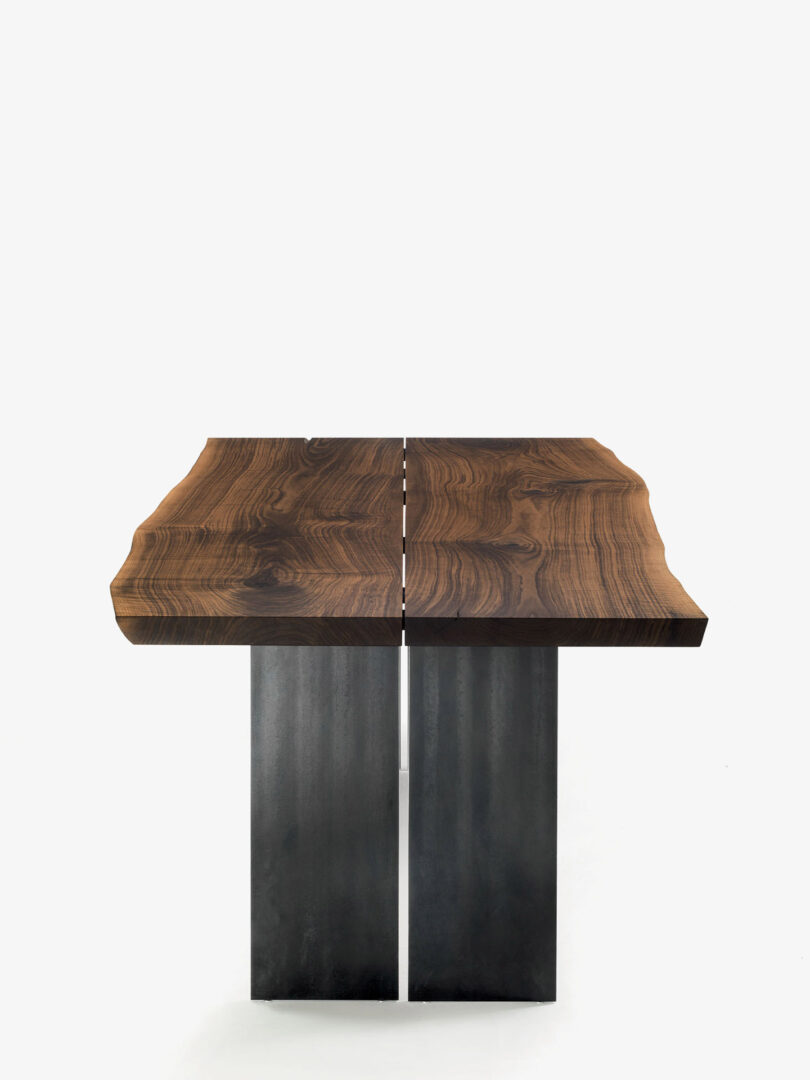 Стол NATURA PLANK от итальянской фабрики RIVA 1920 – воплощение природной эстетики и итальянского мастерства. Массивная деревянная столешница из двух уникальных досок с естественными краями подчеркивает натуральную текстуру дерева. Металлические ножки с центральным соединением добавляют современный акцент.