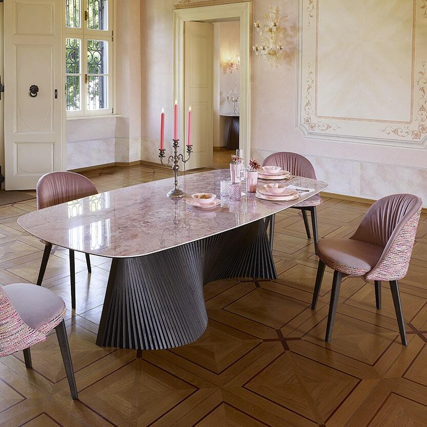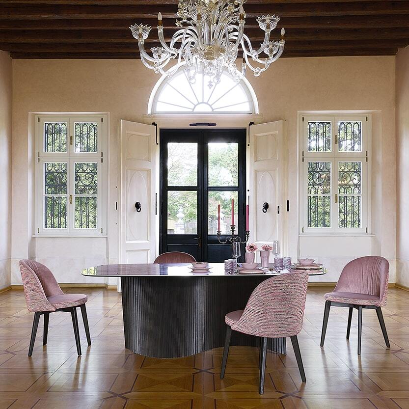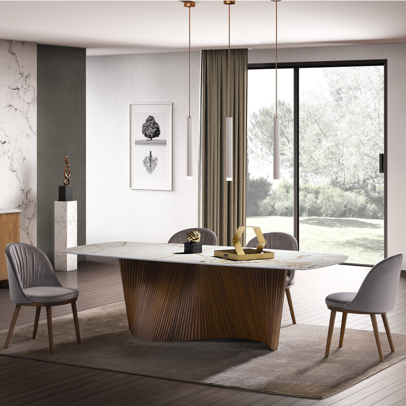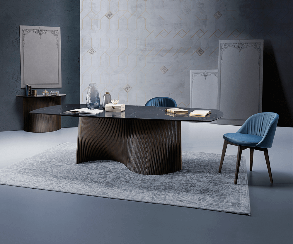 Стол Orbit отличается лаконичными линиями и скульптурной выразительностью, сочетая современные тенденции с классической итальянской эстетикой. Его дизайн — результат кропотливой работы ведущих мастеров NOVAMOBILI, где каждая деталь продумана до мелочей: