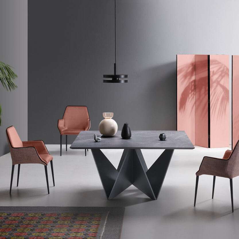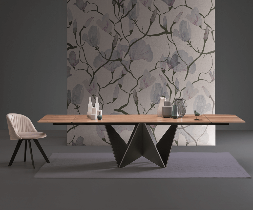 Стол Origami от итальянской фабрики NOVAMOBILI – воплощение современного дизайна с отсылкой к японскому искусству. Уникальная конструкция с «складывающейся» основой из металла или дерева создает эффектный силуэт, напоминающий бумажный оригами. Доступен в нескольких модификациях: с выдвижной столешницей (керамогранит, шпон, стекло) или фиксированной квадратной формой.
