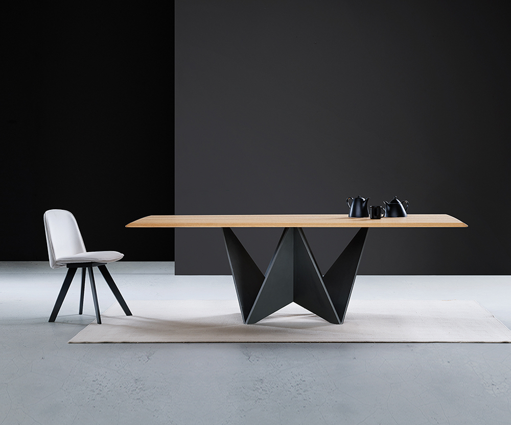 Название Origami отражает философию модели: стол объединяет геометрическую точность и пластику форм, напоминая изящество японского искусства. Дизайнеры NOVAMOBILI создали гармоничный контраст — массивная столешница с эффектом «парящей» конструкции визуально облегчает силуэт, а лаконичные металлические опоры добавляют современный шик. Такой стол идеально дополнит:
