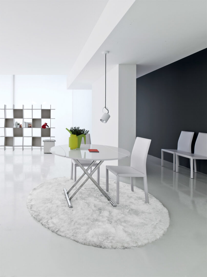 Обеденный стол SIMPLE ROUND от итальянской фабрики COMPAR сочетает функциональность и элегантный дизайн. Модель с трансформируемой столешницей из МДФ, облицованного орехом Каналетто, или закаленного матового стекла, легко меняет форму с прямоугольной на круглую. Хромированное или лакированное основание придает столу современный вид. Доступен в нескольких цветовых решениях: белый, серый, бежевый. Идеальное решение для обеденной зоны в стиле минимализм или скандинавский стиль.