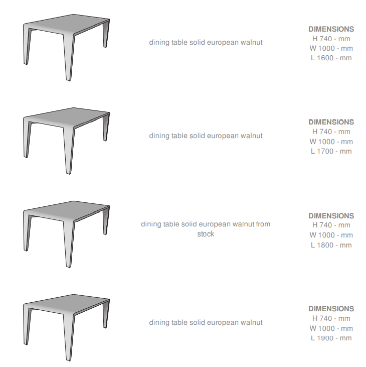 Доступен в 9 вариантах длины (от 160 до 240 см с шагом 10 см) при фиксированной ширине 100 см. Декоративный элемент в виде пальцевого сустава на стыке ножек и столешницы добавляет изысканности. Итальянское качество исполнения гарантирует долговечность и статусность.