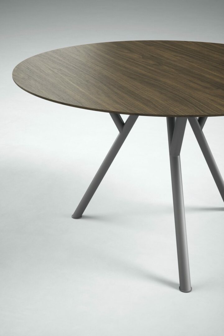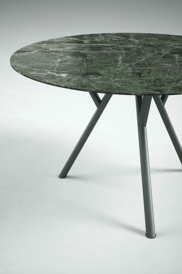 Столешница доступна в различных вариантах: noce, olmo termotrattato, матовая или окисленная лакированная поверхность, а также натуральный мрамор, лавовый камень или светлый камень. Основание покрыто металлическим, матовым или окисленным лаком, что придает столу элегантность и долговечность.