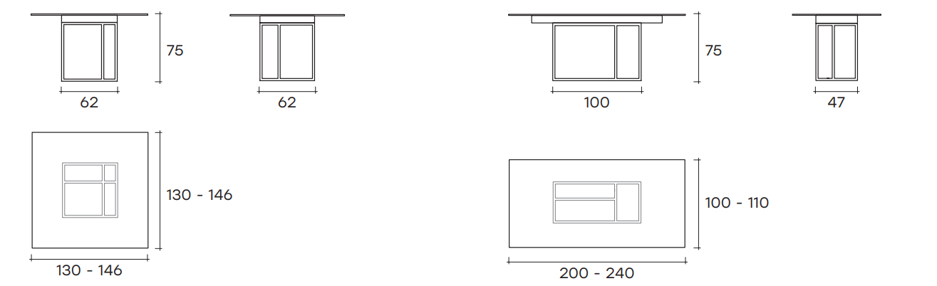 Столешница из закаленного стекла (12 или 15 мм) представлена в нескольких вариантах: прозрачное, тонированное в монохромные или металлические оттенки, а также с покрытием Ecomorta для эффекта мелкой шпаклевки. Идеальное сочетание индустриального стиля и утонченного дизайна для современных интерьеров.