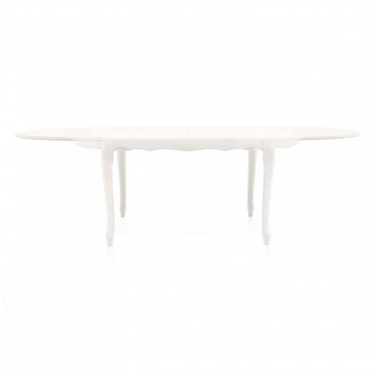 Стол TRAFORATA — это элегантный овальный деревянный стол от итальянской фабрики SEVENSEDIE, который effortlessly вписывается в классическую обстановку в стиле барокко. Его изысканная резьба на ножках и боковой полосе может быть дополнена серебряным или сусальным лаком, добавляя роскоши вашему интерьеру.