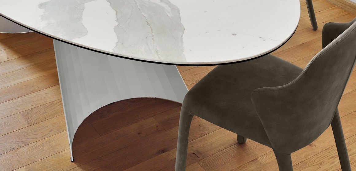 Стол Tuile Ov сочетает в себе чистоту линий и сложность деталей, характерные для лучших итальянских традиций. Овальная столешница с плавными изгибами создает ощущение легкости, а массивное основание подчеркивает статусность мебели. Такой стол станет центральным элементом обеденной зоны, придавая интерьеру респектабельность и утонченность.