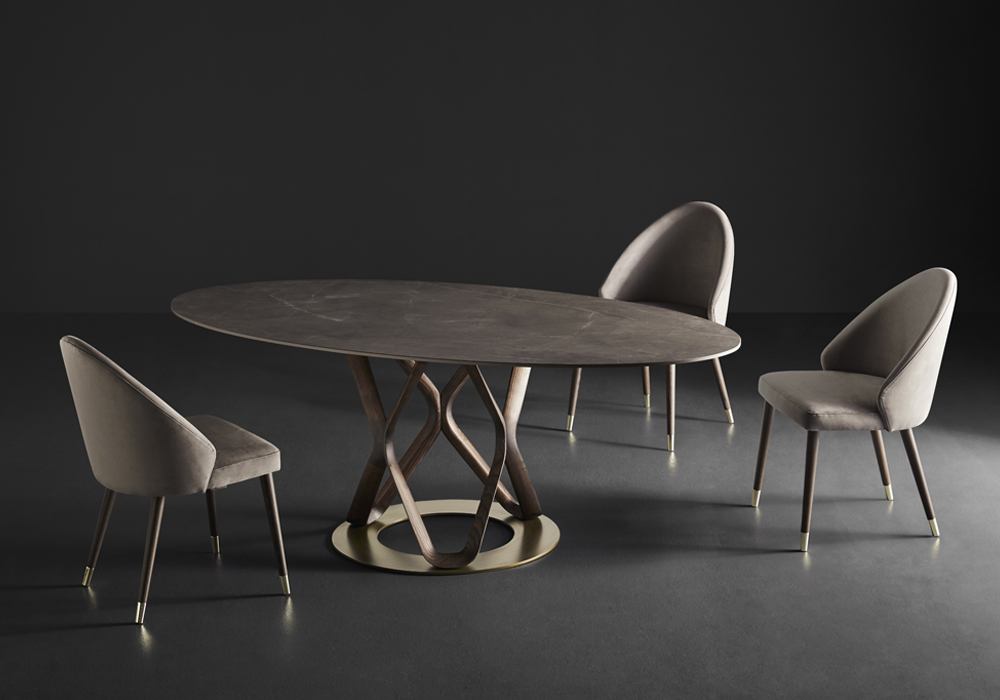 Извилистые линии деревянного основания делают стол V6 поистине уникальным. Каждый изгиб продуман до мелочей, создавая гармоничную и сбалансированную композицию. Это авторский дизайн, в котором сочетается современность и классические итальянские традиции. Драгоценные материалы, использованные в производстве, позволяют столу не только выглядеть великолепно, но и служить долгие годы, сохраняя свою первозданную красоту.