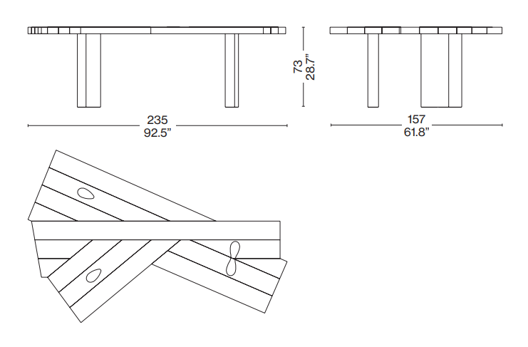 Изготовлен из натурального дуба или окрашен в чёрный цвет с массивными деревянными краями. Благодаря продуманной конструкции вмещает от 5 до 9 человек, сохраняя элегантность в любом интерьере. Итальянское качество и внимание к деталям делают его идеальным выбором для ценителей премиального дизайна.