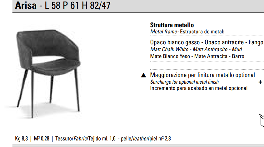 Стул ARISA от итальянской фабрики SEDIT Italia – элегантное решение для современного интерьера. Итальянское качество и дизайн сочетаются в этой модели, делая её идеальным выбором для гостиных, столовых или офисов.