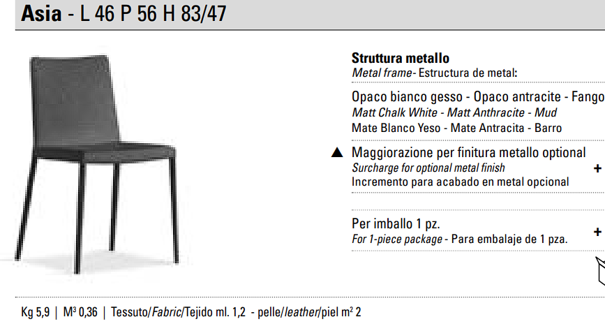 Стул ASIA от итальянской фабрики SEDIT Italia — элегантное решение для современного интерьера. Итальянское качество и дизайн сочетаются в этой модели, создавая комфорт и стиль. Идеально подходит для гостиных, столовых и офисных пространств.