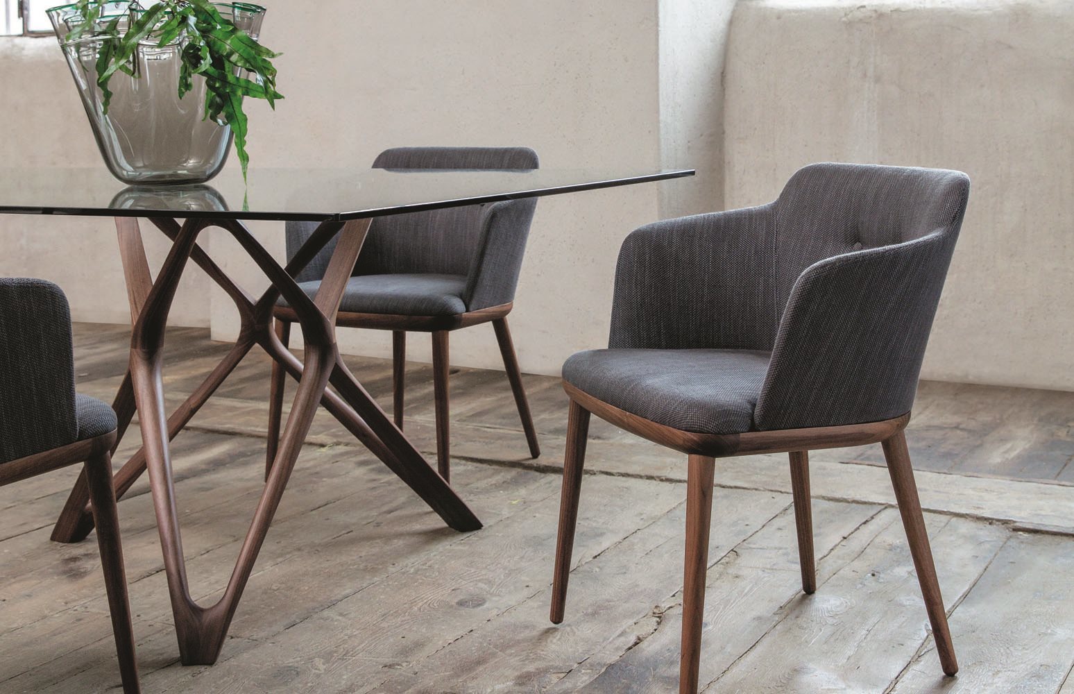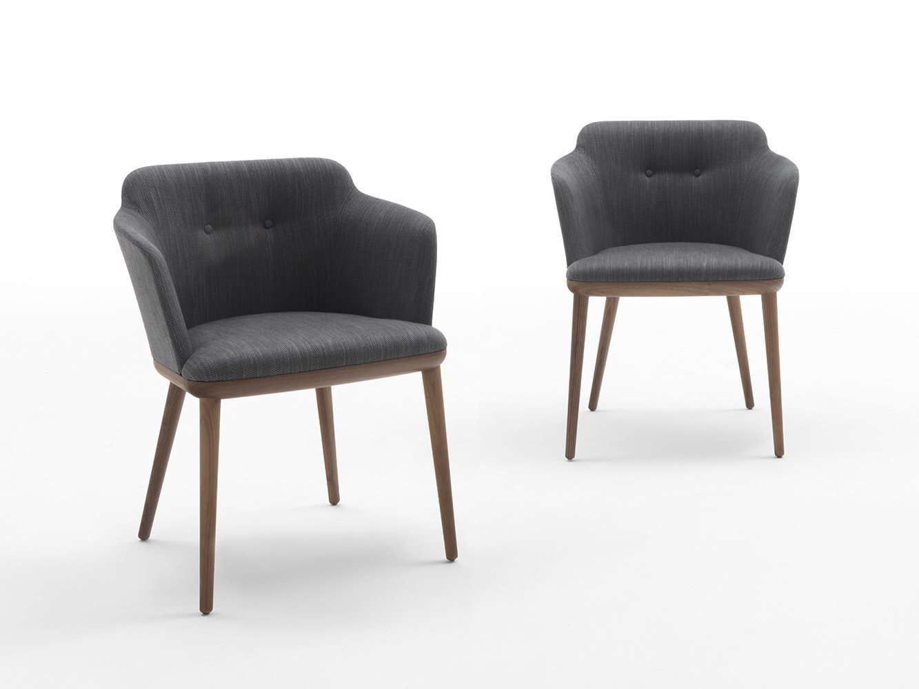Элегантный стул с подлокотниками, выполненный из массива ореха каналетта или ясеня. Обивка доступна в тканях коллекции, что позволяет создать уникальный образ вашего интерьера. Уникальная возможность заказать спину и пуговицы в тон или контрастные добавляет индивидуальности.