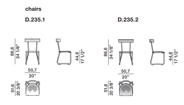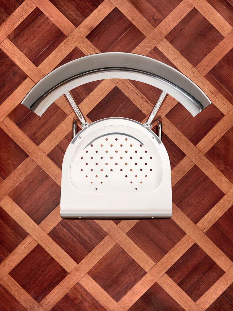 Стул D235.1 от итальянской фабрики Molteni&C — переиздание культового дизайна Джо Понти 1935 года, созданного для здания Монтекатини в Милане. Модель полностью выполнена из полированного алюминия, сохраняя аутентичность по оригинальным чертежам из архивов мастера.