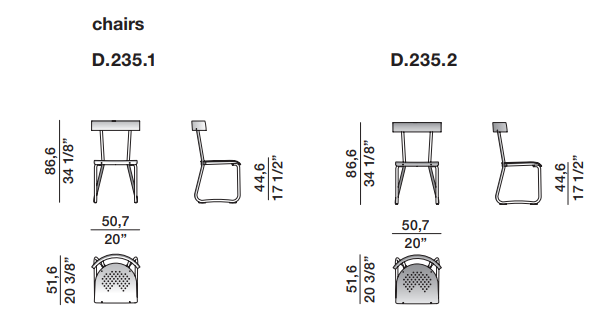 Стул D235.2 от итальянской фабрики MOLTENI & CO – ремейк культовой модели, созданной Джо Понти в 1935 году для здания Монтекатини в Милане. В 2014 году наследники Понти одобрили переиздание этого дизайнерского шедевра.
