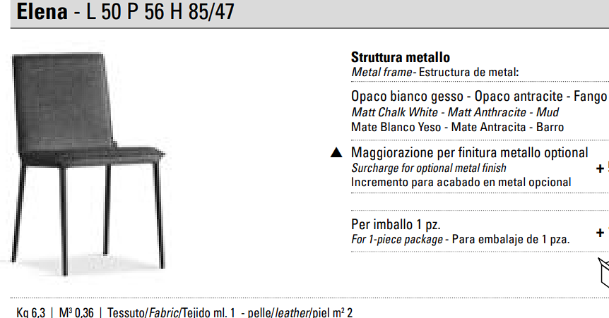 Итальянская мебель славится безупречным качеством материалов, и Стул ELENA — не исключение. Для его создания используются: