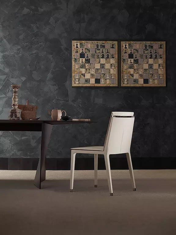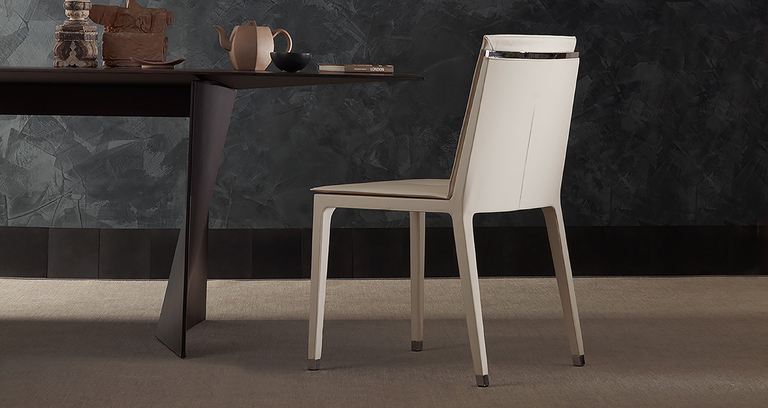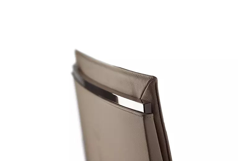Использование кожи Pelle Frau® в обивке кресла — это не просто выбор, это проявление уважения к традициям итальянского производства. Эта кожа известна своей мягкостью и долговечностью, что говорит о высоком качестве и статусе. Край спинки выделен алюминиевой отделкой с рутениевой отделкой, которая повторяется на ножках, добавляя нотку современности и элегантности.