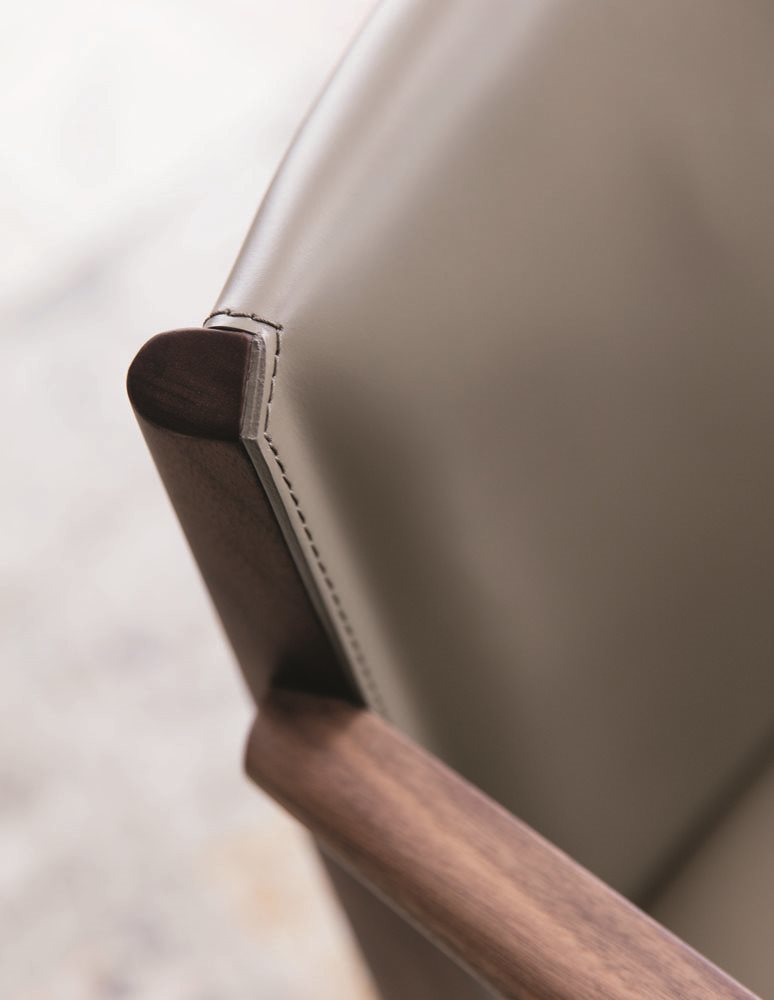 Каркас выполнен из массива ореха каналлетта, что обеспечивает прочность и долговечность, а кожаное сиденье придаёт элегантности и комфорт.