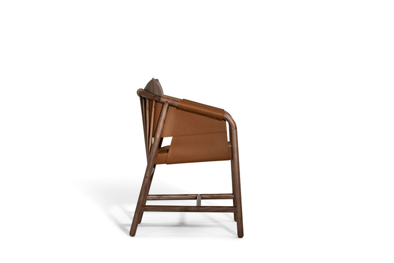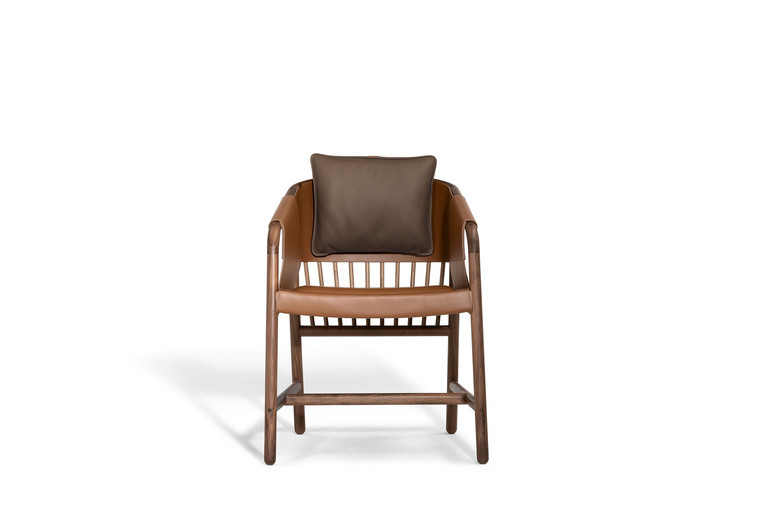 Стул сочетает классические традиции и современный дизайн, вдохновленный английским наследием. Его уникальные детали, такие как дюбели из орехового дерева Canaletto и обивка из кожи Pelle Frau® Colorsphere, подчеркивают внимание к качеству и стилю.
