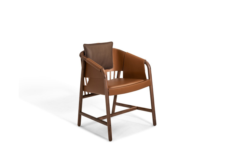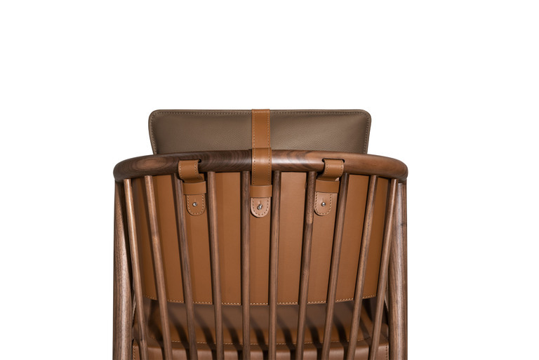 Стул La Selle представляет собой гармоничное сочетание классических традиций и современного подхода к дизайну. Его форма и линии отсылают к английскому наследию, напоминая о виндзорских стульях и традиционных шорных изделиях. Внимание к деталям проявляется в использовании дюбелей из орехового дерева Canaletto, которые напоминают о конюшнях, и в тщательно проработанной обивке из кожи Pelle Frau® Colorsphere. Каждый стул может быть индивидуально настроен по цвету и материалу, что позволяет создать по-настоящему уникальное ощущение.