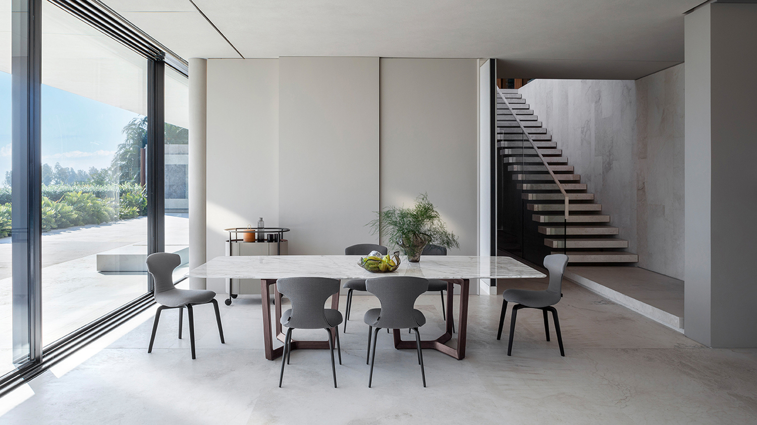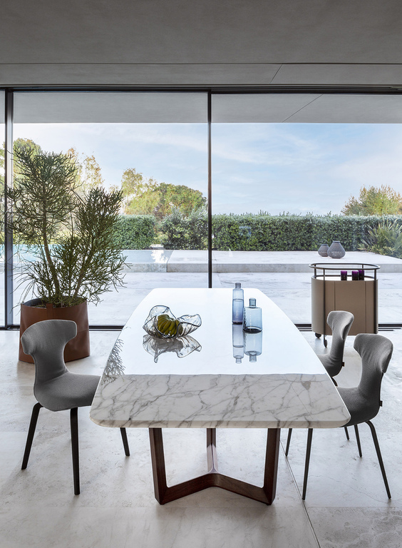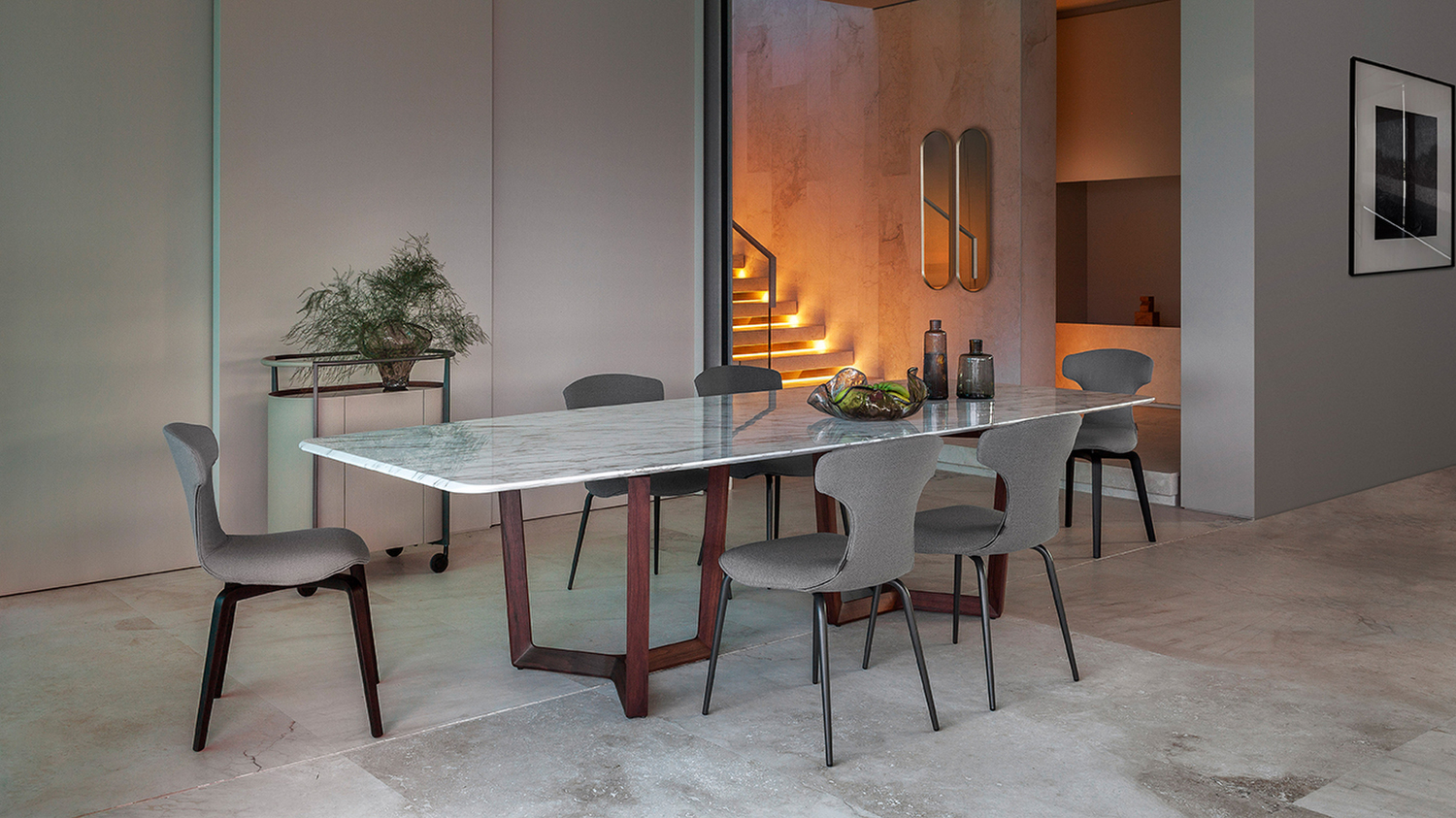 Фабрика Poltrona Frau использует исключительно натуральные и долговечные материалы. Каркас стула выполнен из массива ценных пород дерева, а обивка — из кожи Pelle Frau® или элитных тканей премиум-класса. Каждый элемент проходит строгий контроль качества, что гарантирует безупречный внешний вид и долговечность.