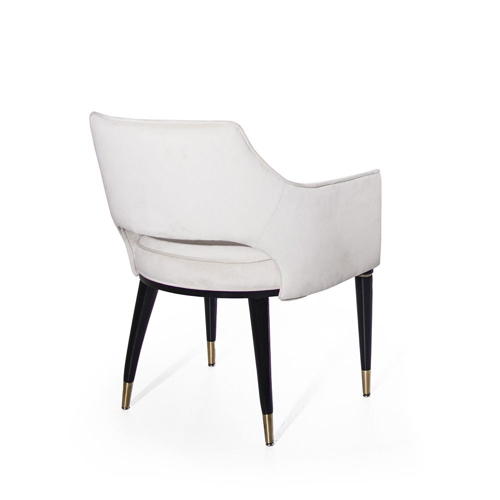 Стул MUZIO от итальянской фабрики FORMITALIA – воплощение элегантности и комфорта. Модель с простой спинкой обтянута бархатом LE 056 с аккуратной строчкой тон в тон. Ножки из лакированного дерева с черной глянцевой отделкой дополнены латунной фурнитурой, подчеркивающей премиальный статус изделия.