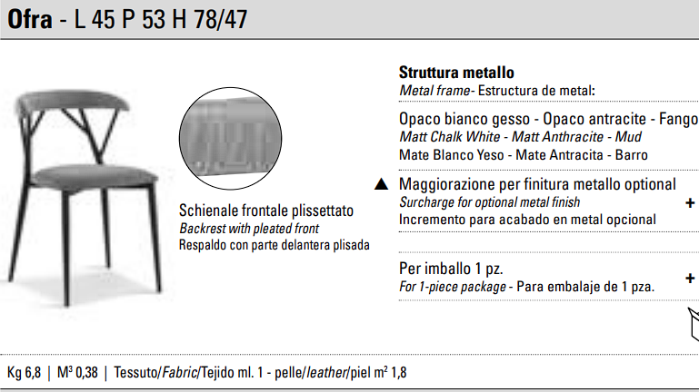 Стул OFRA от SEDIT Italia — это больше чем мебель, это символ статуса и безупречного вкуса. Владея этим предметом интерьера, вы приобретаете частицу итальянского искусства, созданную для тех, кто ценит подлинную роскошь. Выбирайте лучшее — выбирайте SEDIT Italia.