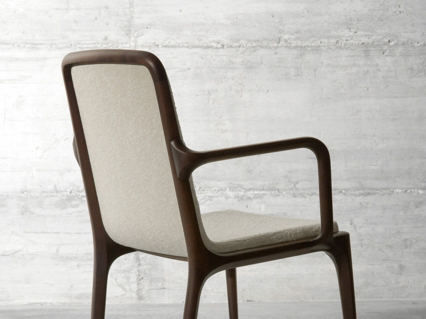 Изготовленный из цельного американского грецкого ореха, OTTO предлагает комфорт благодаря плавным линиям спинки и основания, выполненного из мягкой фанеры. Доступен в вариантах с подлокотниками и без, а также в различных отделках: от натуральной кожи до ткани, что позволяет гармонично вписать его в интерьер кухни или гостиной.