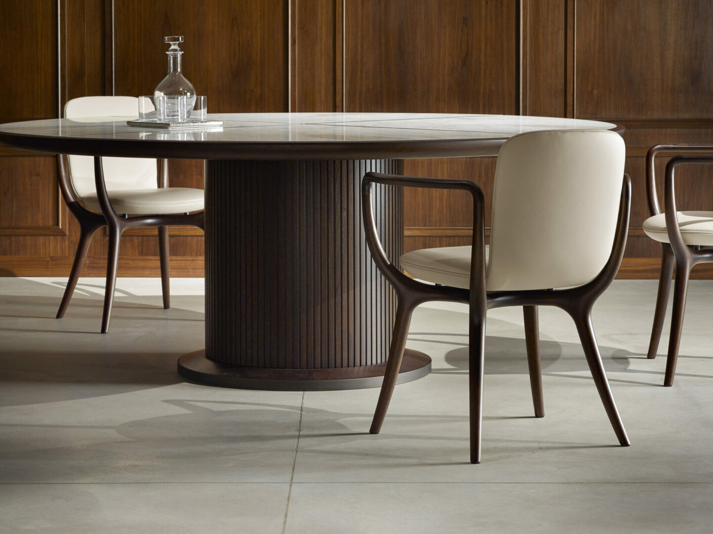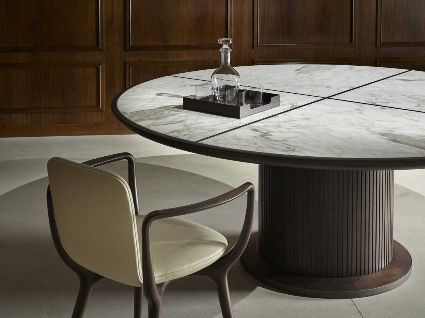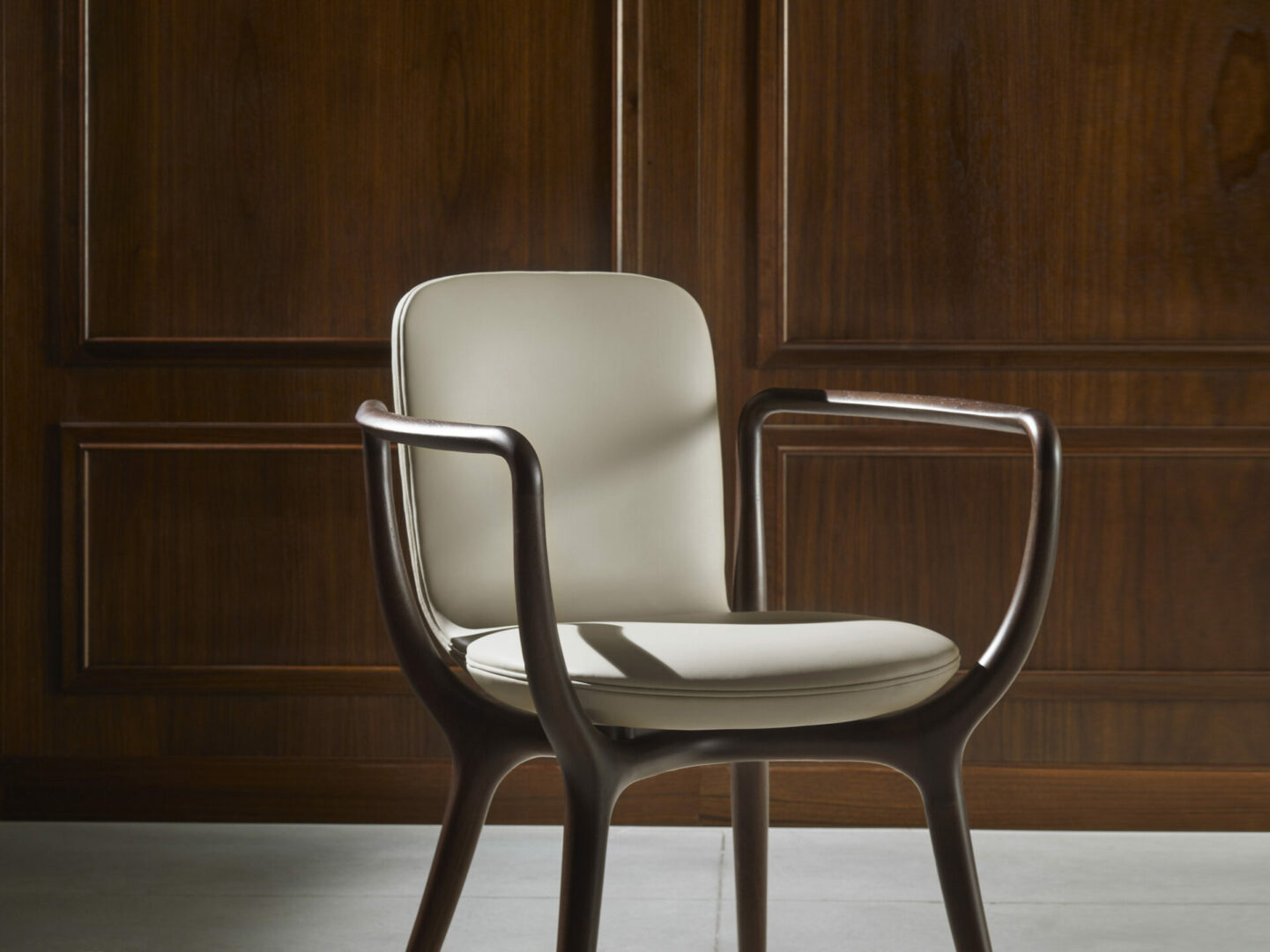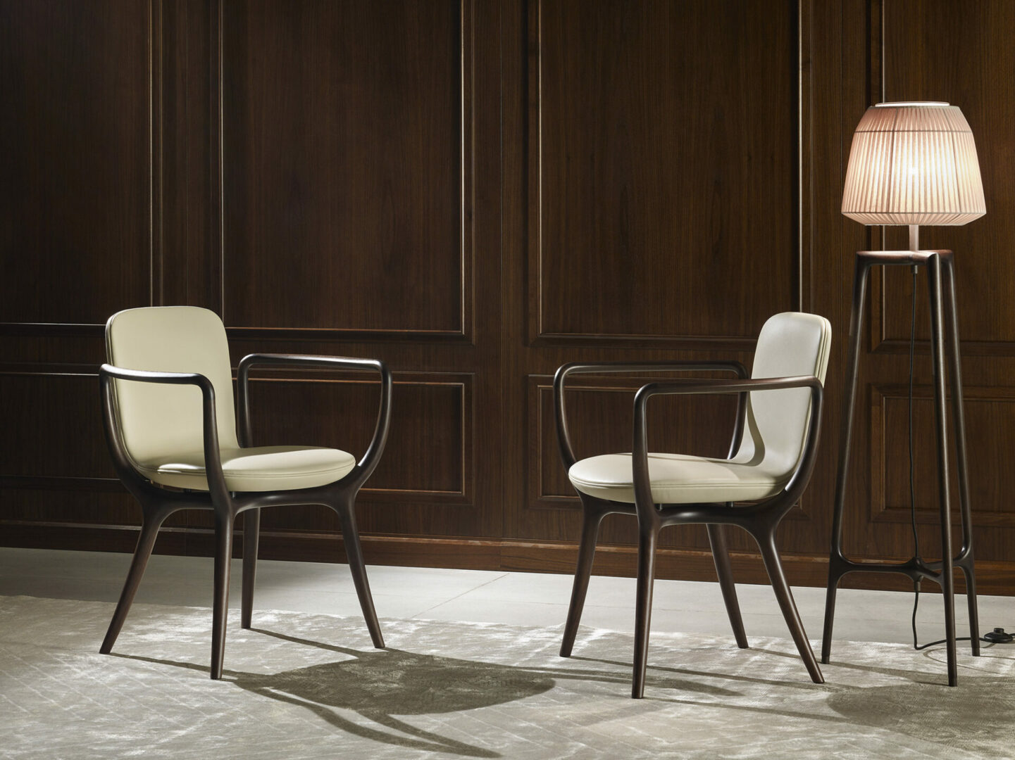 Стул PIRUETTE – это изысканное произведение искусства, созданное Роберто Лаццерони. Его обволакивающий силуэт сочетает в себе традиционные ремесленные техники и современные дизайнерские решения. Изготовленный из массива американского ореха, стул поддерживается элегантными подлокотниками и X-образной конструкцией, обеспечивающей надежность и комфорт.