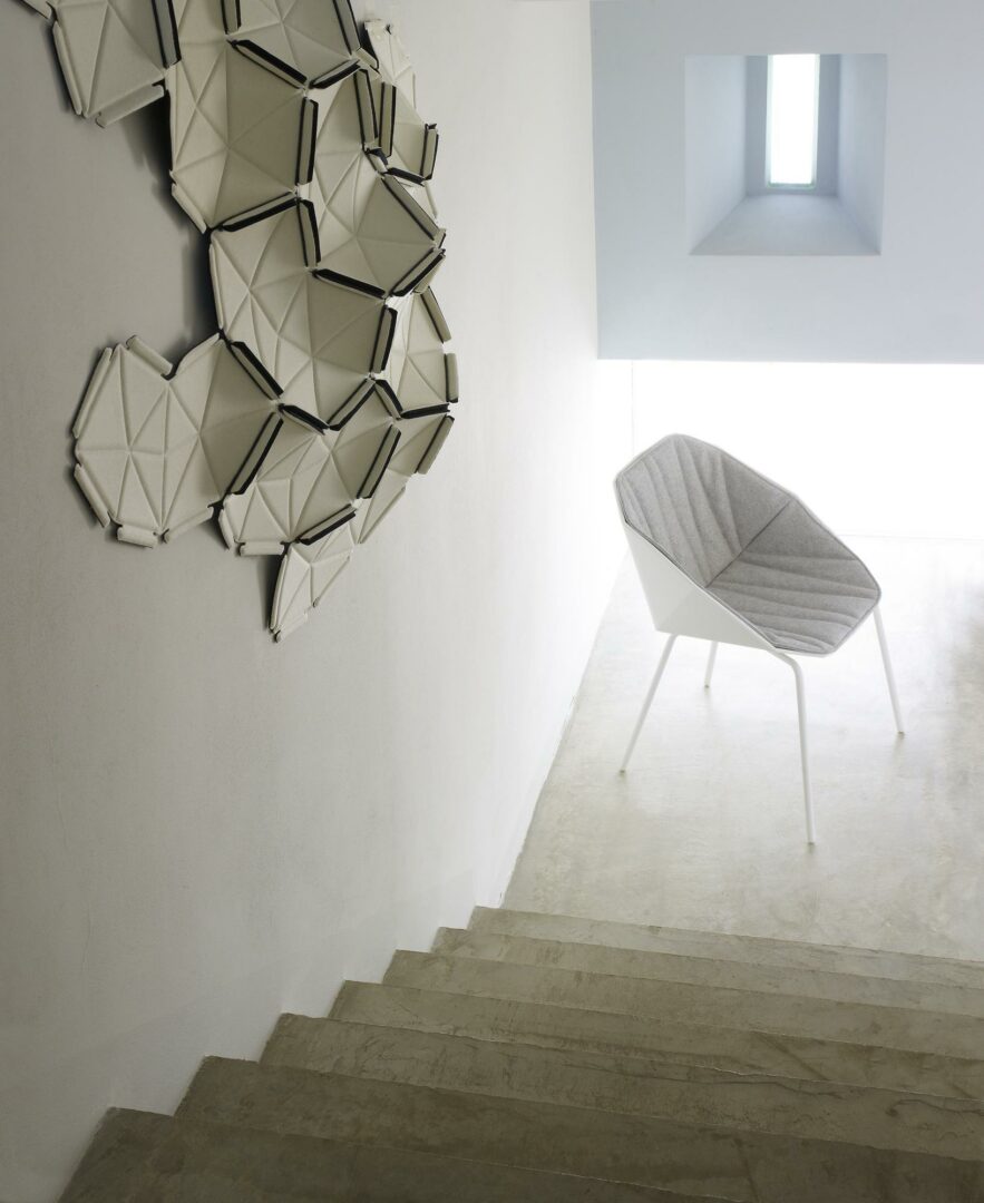 Стул ROCHER от французской фабрики Ligne Roset – это современный дизайн с фрактальной геометрией, напоминающей огранку алмаза. Модель отличается граненой конструкцией, где оболочка объединяет сиденье, спинку и подлокотники. Устойчивость обеспечивают четыре стальные ножки с лаковым покрытием в тон корпусу.