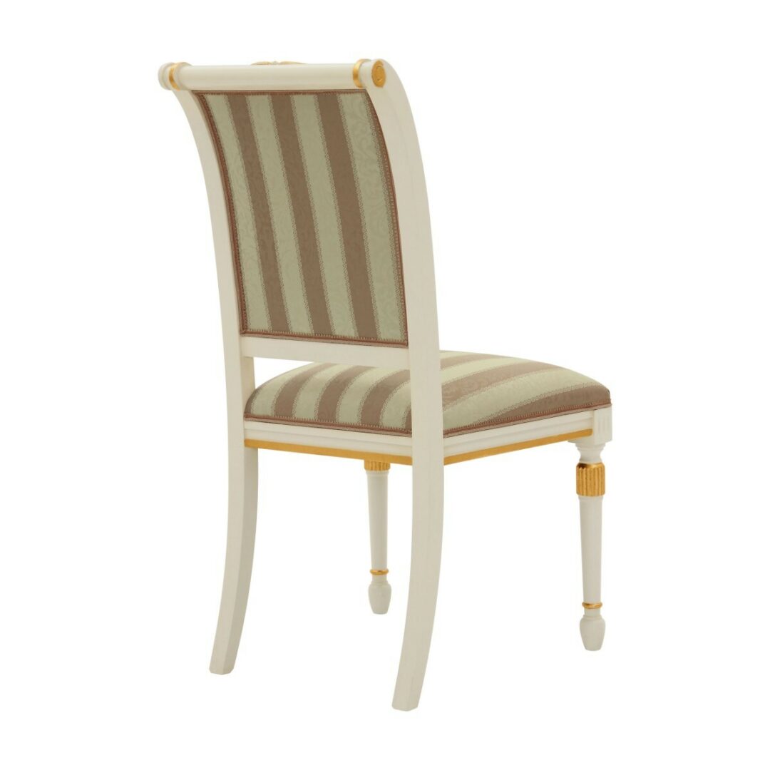 Стул Salgari — воплощение итальянского мастерства, выполненный на 100% в Италии. Этот классический элемент интерьера отличается изысканными резными деталями, которые могут быть дополнены золотым или серебряным листом, подчеркивающими его уникальность и роскошь.