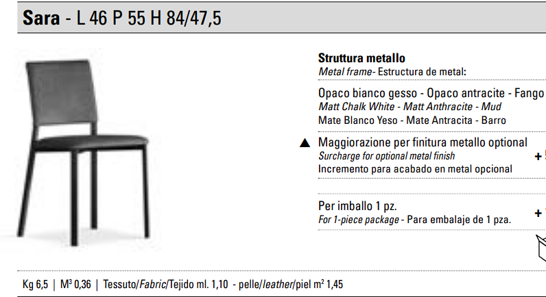 Производство стула SARA — это трудоемкий процесс, в котором сочетаются современные технологии и многовековые традиции итальянских мастеров. Каждый стул собирается вручную, а контроль качества на всех этапах гарантирует безупречный результат. Мягкая обивка с безупречной стежкой, идеально подогнанные детали и финишная обработка — все это делает SARA образцом премиальной мебели.