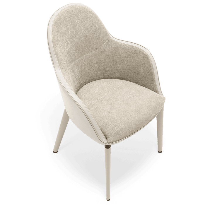 Стул SELENE — это маленькое кресло, которое идеально сочетает в себе эстетику и функциональность. Его изящные линии и гармоничные пропорции делают его универсальным элементом для любого пространства. Вы можете выбрать обивку из роскошной ткани или кожи, а также контрастные цветовые сочетания, что позволяет персонализировать стул в соответствии с вашим вкусом и стилем интерьера. С внешней стороны стул обит кожей, а внутренняя часть может быть выполнена как из ткани, так и из кожи, что создает эффектный визуальный контраст.