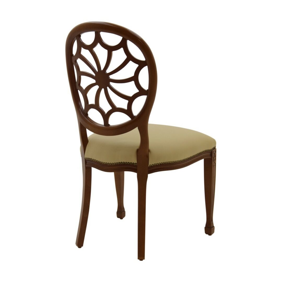 Стул SOLE выполнен в классическом стиле, который никогда не выходит из моды. Его каркас из букового дерева обеспечивает прочность и долговечность, что делает его не только красивым, но и функциональным выбором для вашего дома. Задняя часть стула украшена великолепной радиальной инкрустацией, которая придаёт изделию уникальный шарм. Элементы из сусального или серебряного листа создают эффект роскоши, делая каждое кресло настоящим центром внимания в интерьере.