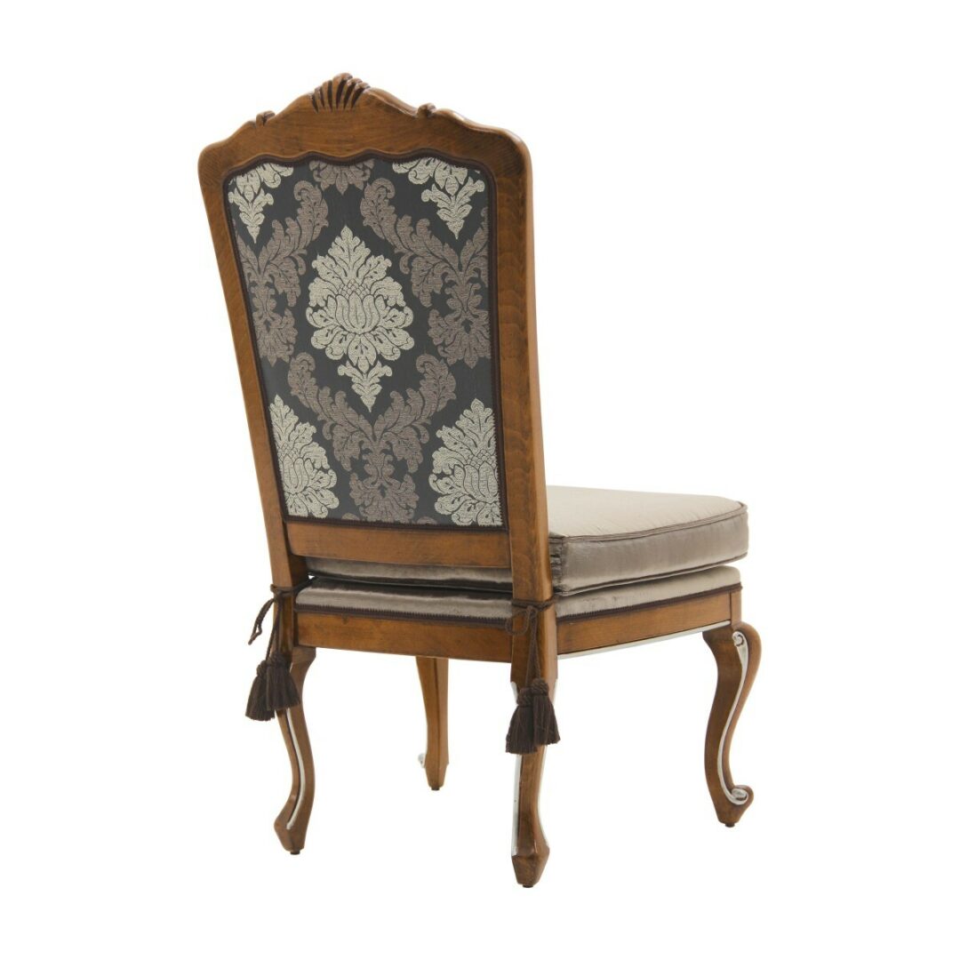 Стул VIENNA — это элегантное кресло в классическом итальянском стиле, выполненное из прочного букового дерева. Его изысканная конструкция дополнена множеством деталей, которые могут быть улучшены с помощью лака из сусального или серебряного листа, что подчеркивает его премиальность.