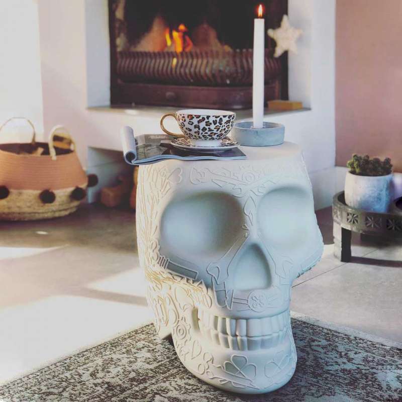 Дизайнерский табурет MEXICO STOOL AND SIDETABLE от итальянской фабрики QEEBOO – яркий пример современного искусства в интерьере. Созданный Studio Job, этот предмет вдохновлен традиционными мексиканскими мотивами и выполнен в форме стилизованного черепа с графическим рисунком. Полиэтилен обеспечивает легкость (всего 3,5 кг) и прочность, а компактные габариты (38×53×45 см) делают его универсальным для использования в качестве табурета или приставного столика.