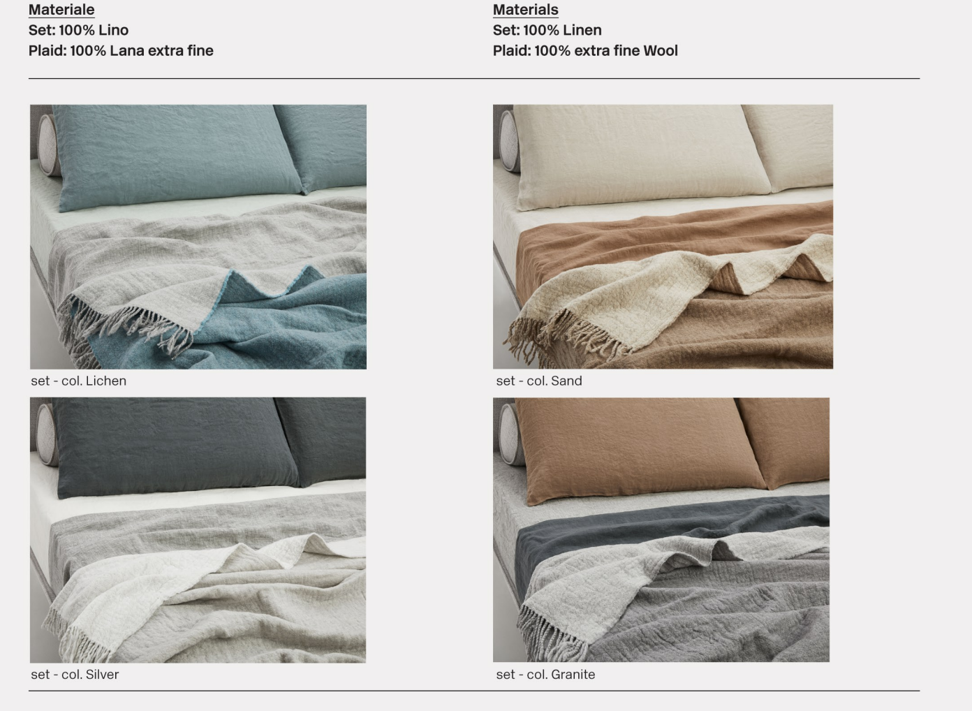 Итальянская текстильная коллекция Plain Collection Bed Linen & Plaid от Saba Italia — это воплощение роскоши и осознанного подхода к дизайну. Включает постельное белье, покрывала и ковры, созданные из натуральных и переработанных материалов. Каждое изделие отражает гармонию, благополучие и уважение к окружающему миру.
